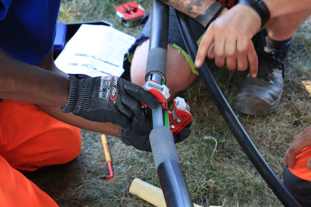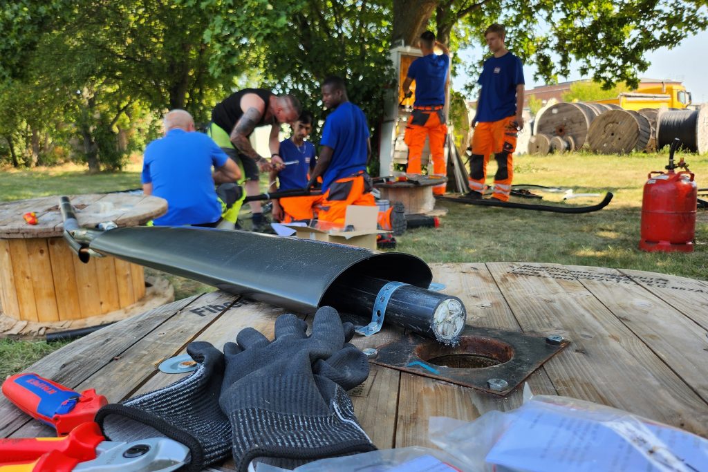 Im Zuge der Zulassungsprüfung „Kabelmontage“ fand auf unserem Bauhof in Magdeburg eine vorbereitende Weiterbildung für Mitarbeiter und Auszubildende statt. An verschiedenen Stationen wurden Muffen- und Kabelmontage im Nieder- und Mittelspannungsnetz von erfahrenen Elektrofachkräften erklärt und am Objekt geübt.